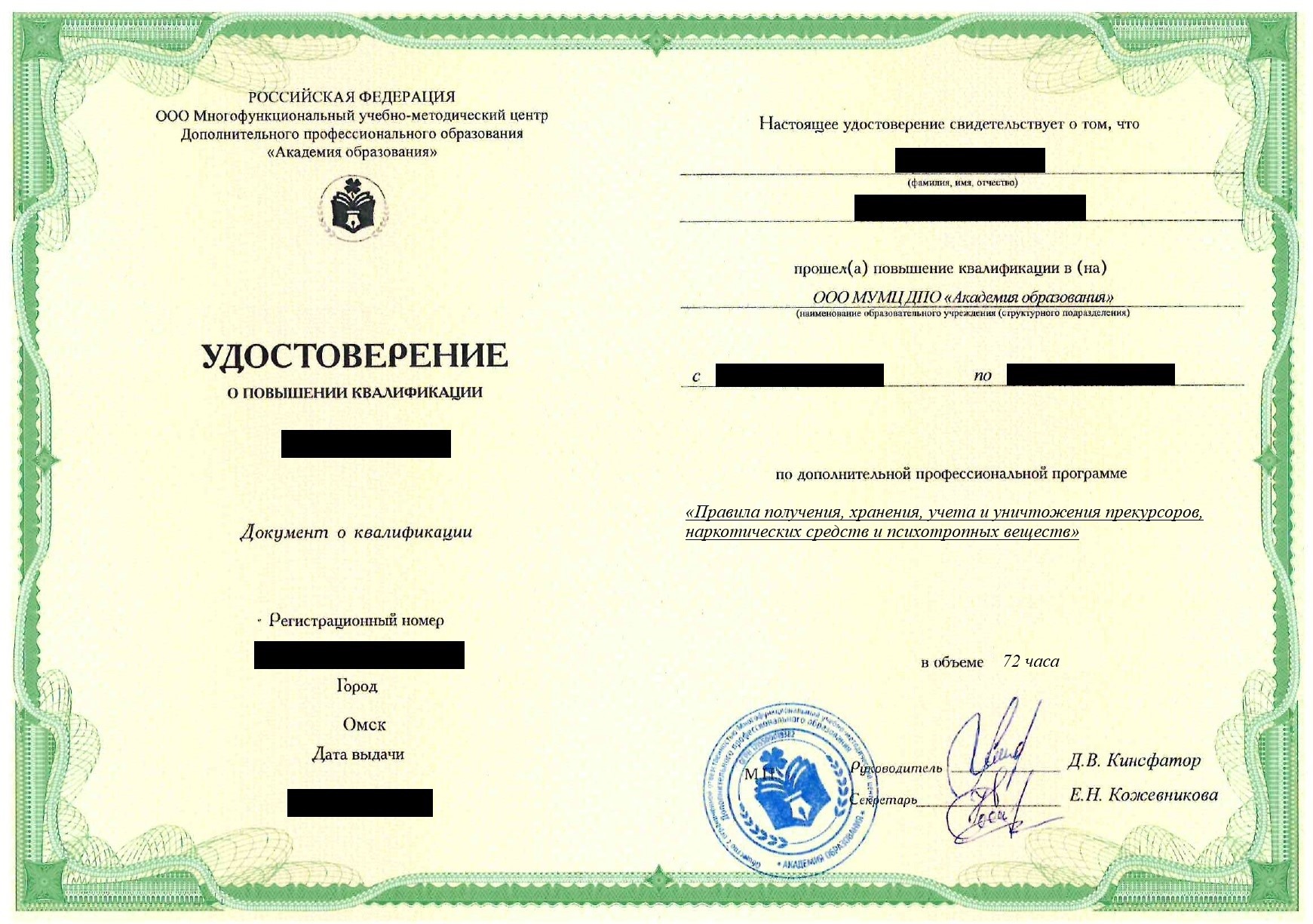 Повышение квалификации правила получения, хранения, учета и уничтожения прекурсоров, наркотических средств и психотропных веществ в Петропавловск-Камчатске