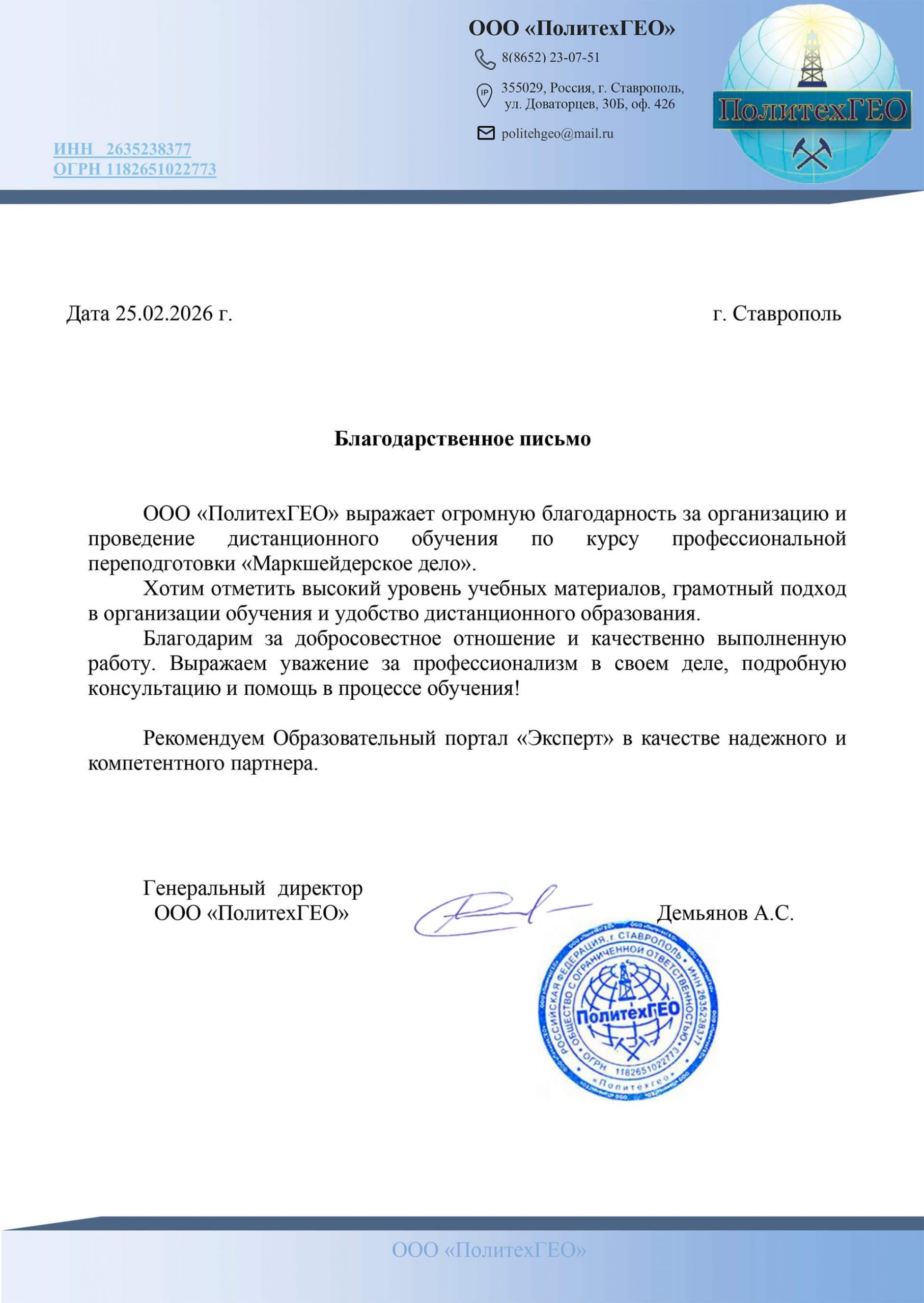 Все благодарственные письма → смотрите на этой странице